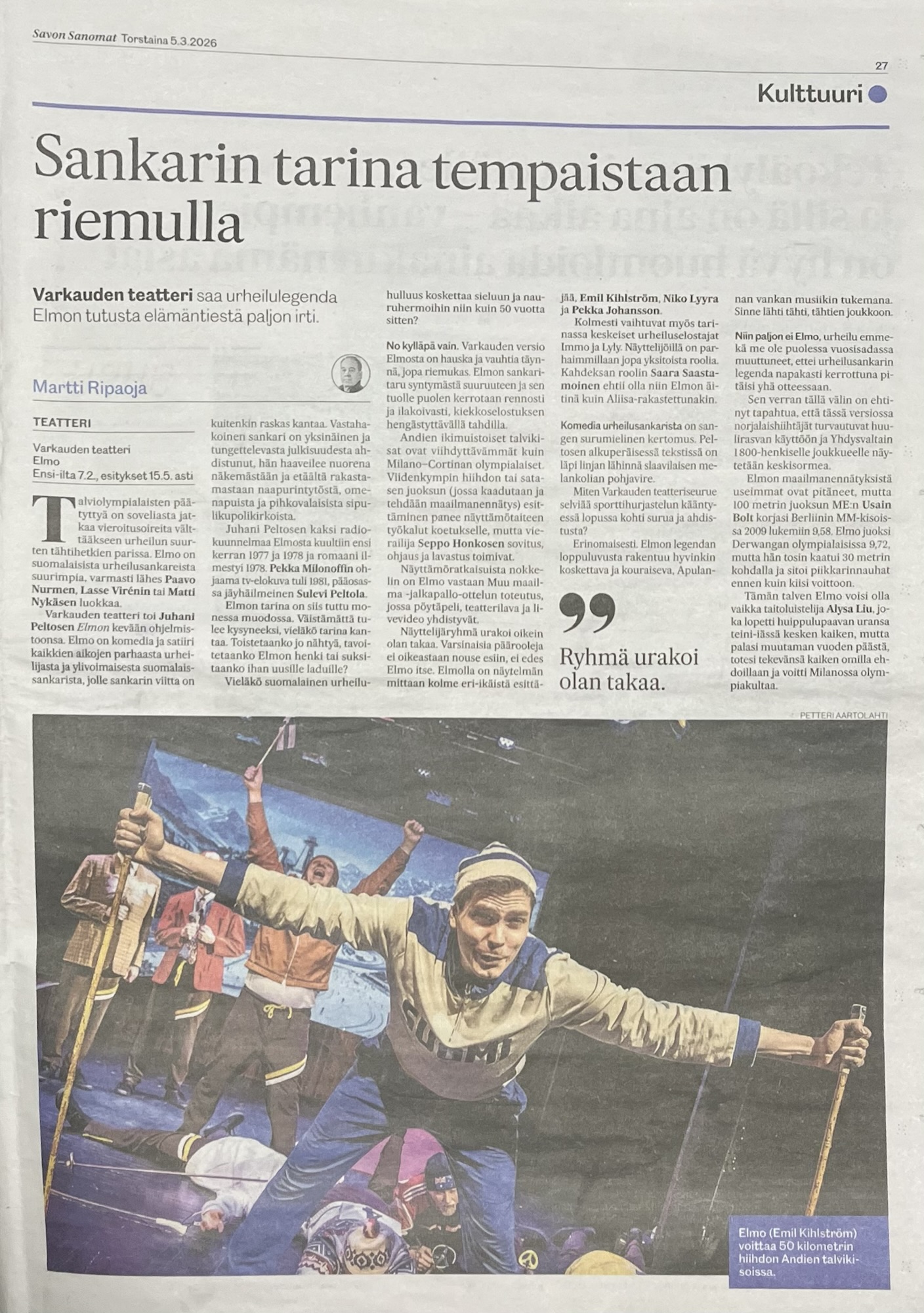 Varkauden Teatteri: ELMO 7.2.2026 (dramaturgi, ohjaaja ja lavastaja).