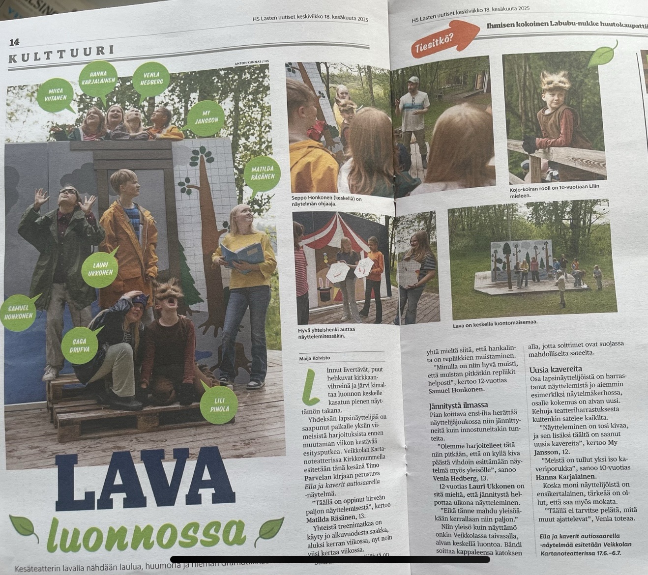 Veikkolan Kartanoteatteri: ELLA JA KAVERIT AUTIOSAARELLA, kantaesitys 17.6.2025 (dramaturgi, ohjaaja ja lavastaja).